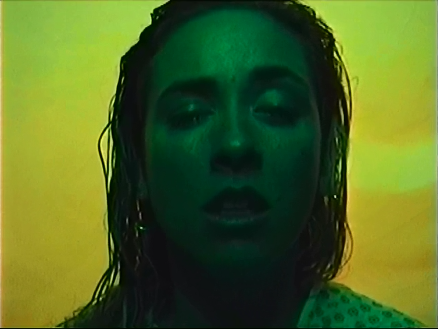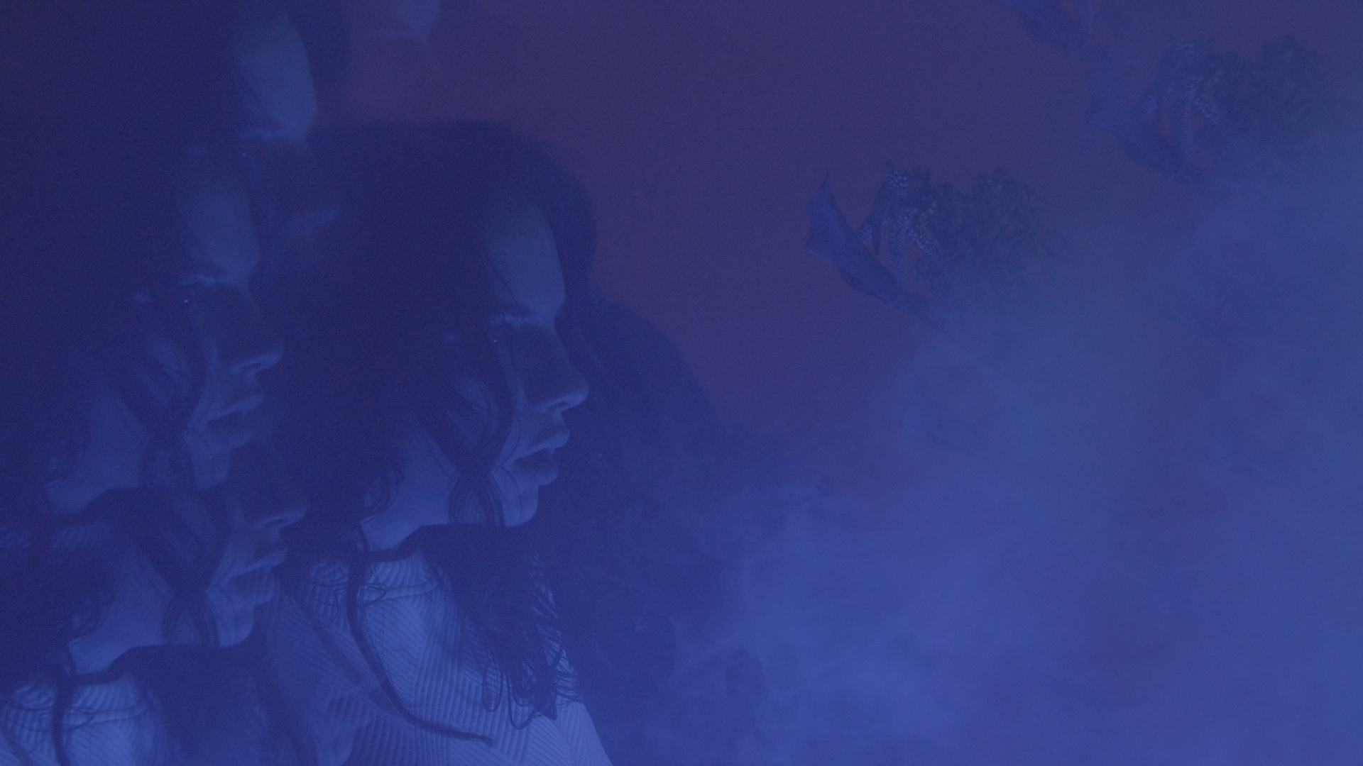 3) Finally, there are certain effects that can only be achieved in post. In Bugbrain, we wanted our protagonist to be hypnotized by a glowing white orb; however, the orb was not bright enough for the camcorder’s sensor on set. So, we used a color that was different from the rest of the environment, in this case green, in order to manipulate its light specifically. This allowed us to raise the intensity of the light in post, without affecting the rest of the image.